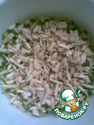 Шампиньоны свежые помыть и нарезать тонкой соломкой.