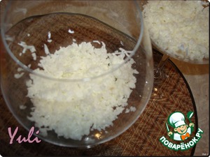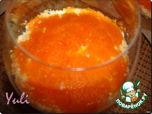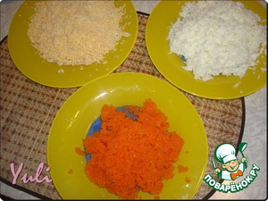 Морковь, белок, желток (по отдельности) натереть на мелкой терке