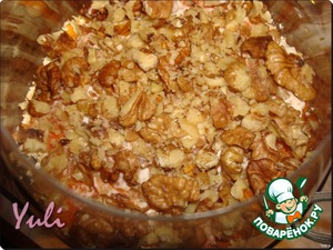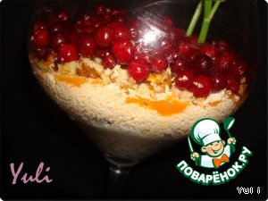 Страсть - это эмоция сильная, стойкая, всеохватывающая... доминирующая над другими побуждениями человека... Вкусив хоть однажды сочетание кальмара с грецким орехом и брусникой, вы поймете, что этот салат стал навсегда предметом вашей страсти. К конкурсу "Scarlett к 8 Марта".