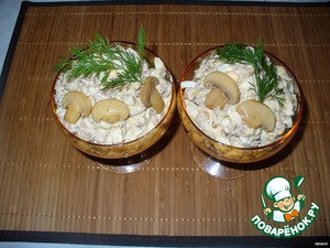 - Шампиньоны (консервированные, можно и свежие) — 1/2 бан.