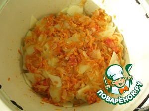 Сверху 1/3 жареных овощей