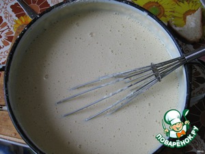 готовим тесто для блинов. сырое молоко слегка прогреваем вместе с солью сахаром и растительным маслом. снимаем с огня и вводим уку и соду. что бы тесто было как жидкая сметана