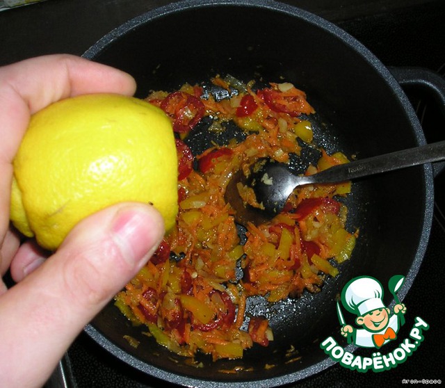 Желательно это приготовить заранее - до обжаривания лука, имбиря и чеснока. -