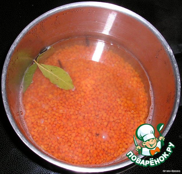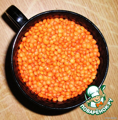 - Чечевица (Существует много сортов чечевицы, но нам нужна именно красная) — 1 стак.