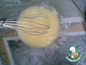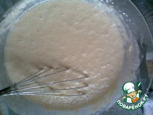Добавить растопленное масло, сметану, вино, соду гашеную, муку консистенция - густая сметана
