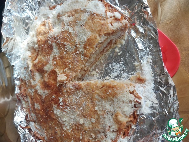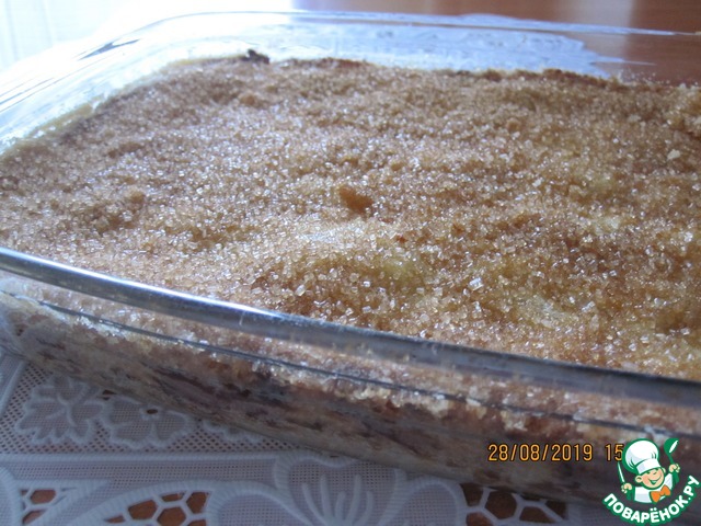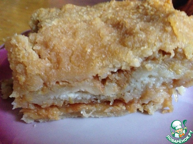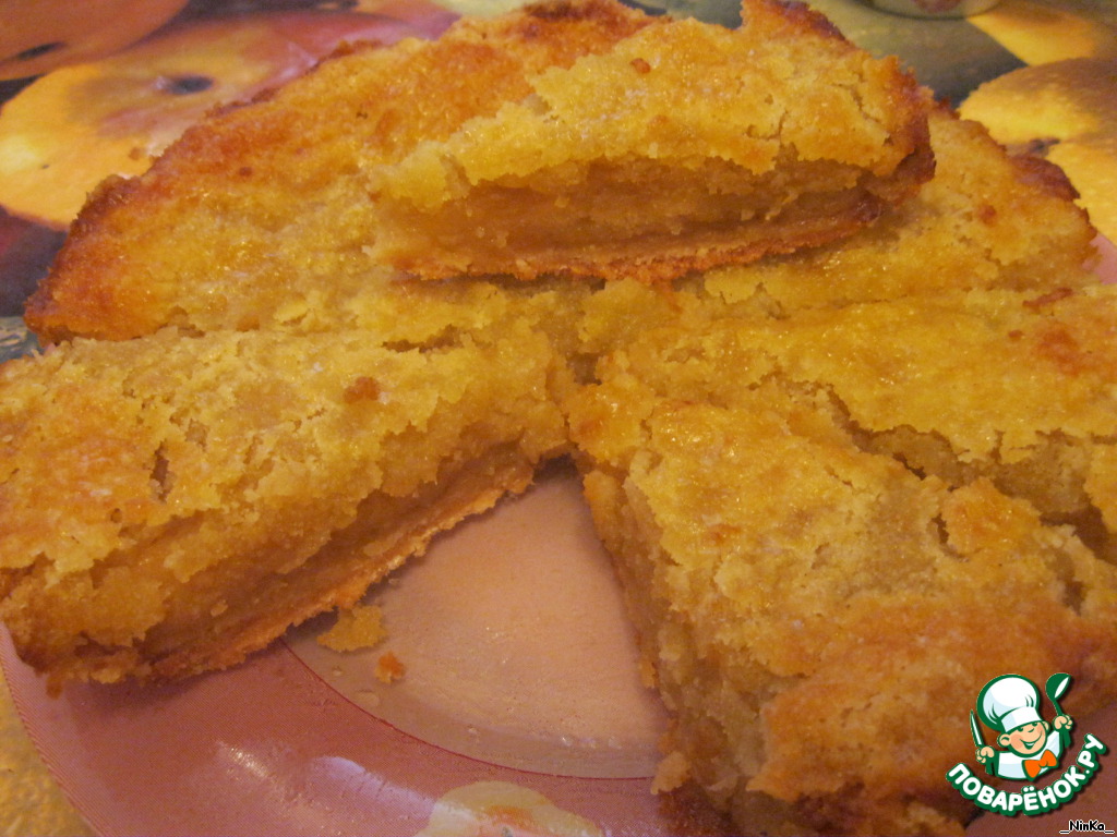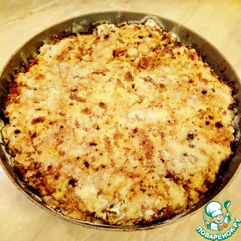 Пирог получился с хрустящей корочкой карамели снаружи...