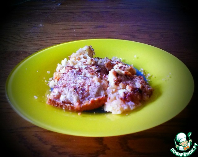 На смазанный противень (у меня 30Х25) распределяем равномерно сначала сухую смесь