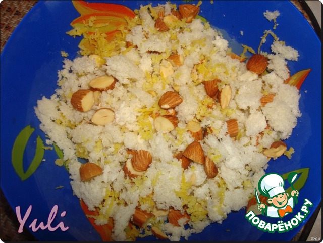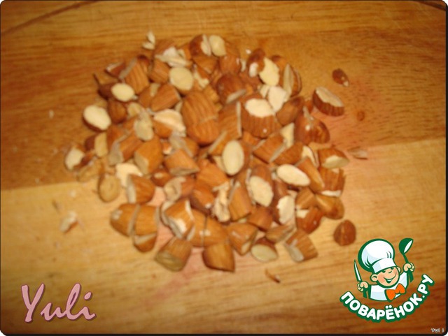 Порубить миндаль. Можно чуть мельче, чем у меня на фото. Мельче мне понравилось больше.