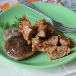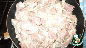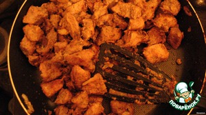 По истечении времени маринования свинина обжаривается на подсолнечном масле до золотистой корочки и затем тушится под крышкой в соку, оставшемся от маринования - до готовности.
