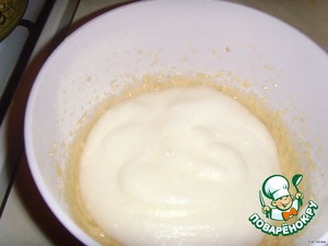 • Белки взбить со щепоткой соли, добавить к тесту, аккуратно перемешать.