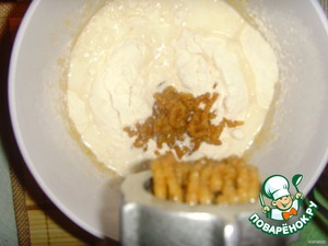 • Добавить муку, молоко, пропущенный через мясорубку изюм, соду, погашенную уксусом, тщательно перемешать.