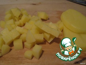 Режем мелкими кубиками картофель, приблизительно по 5 мм