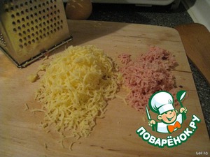 Пока всё это дело обжаривается, трём сыр и оставшуюся сосиску