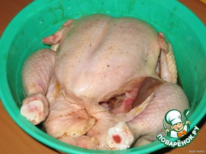 Тушку курицы вымыть, слегка обсушить салфеткой.