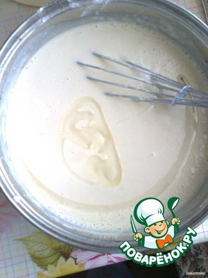 И только в самом конце - "перед жаркой блинов" (бабушка на этом акцент сделала :)) - добавляем взбитые белки.