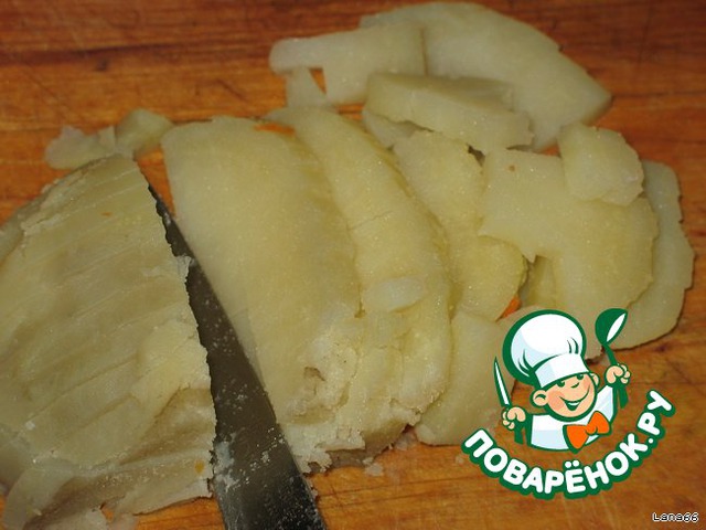 ( вместо нее между слоями картофеля проложила нарезанную тоненькой соломкой слабосоленую форель) и без майонеза ( его в желатиново- сметанной смеси заменила на биойогурт), обязательно повторим, жаль, не успела сфотографировать- просто, когда об этом вспомнила, фотографировать уже было нечего))) ооочень вкусно и необычно!!! Спасибо большое!!!