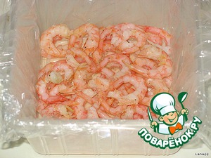 - Креветки (мороженные неочищенные, средней величины. Из них 2 штуки не чистить для украшения.) — 0,5 кг