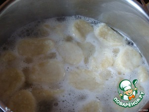 Пока вы готовили тесто, вода в кастрюле закипит. Немного подсаливаем воду и бросаем туда наших лентяев :-). Варим, пока они не всплывут.