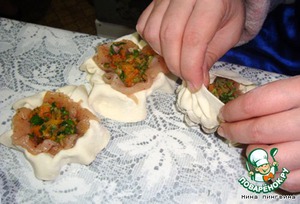 Защипываем края теста так, чтобы в центре остался открытый кружочек