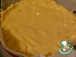 Тесто выложить в предварительно смазанную форму для выпечки. Разровнять по всей форме, сделать бортики.