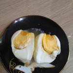 Достаем ложечкой яйцо. Если достать сразу, будет понежнее, и желток, возможно, будет жидковат. Если яйцо нужно крутое, просто подождите немного, прежде чем извлекать на сушу :)