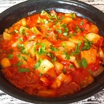 Добавляем томаты в собственном соку... (Можно заменить на свежие... или томатную пасту... но все же если сравните вкус.. то с консервированными вкусней..)))... мелко режем чеснок... солим.. перчим...
