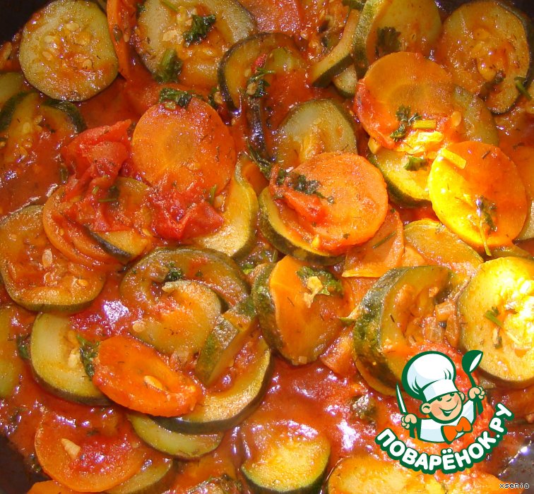 [+5]Делала со свежими помидорами, так как их было много, надо было применять. Цукини были замороженные.