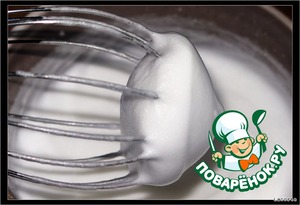 В яйце отделить желток от белка, желток добавить к пюре, а белок взбить до твердых пиков. -