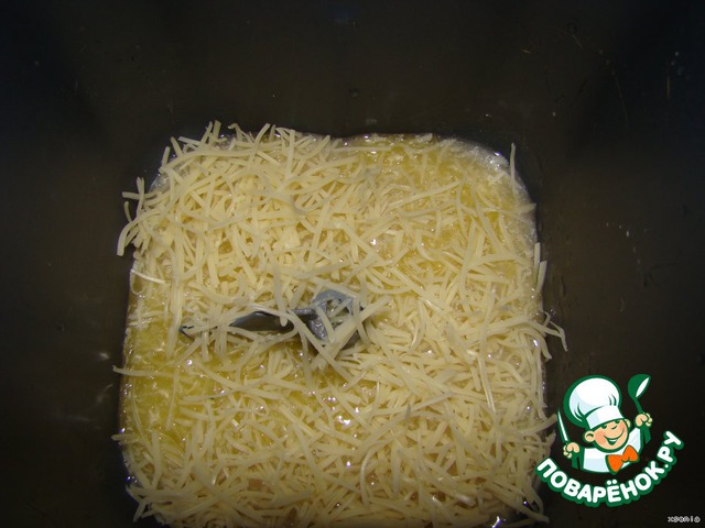 Сыр... затем муку... замешиваем тесто и даем ему подойти...