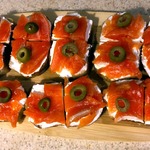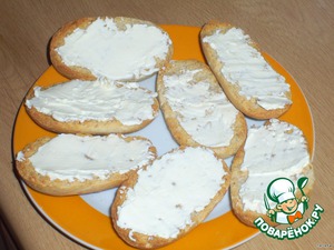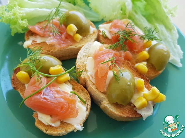 Готовые сухари смазываю мягким творогом или маслицем, сверху кладу красную рыбу, а сверху украшаю чем угодно!