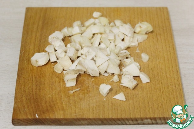Грибы очистить и нарезать на небольшие кубики.