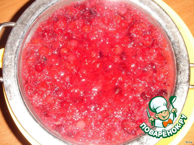 Затем смесь процедить и мякоть протереть через сито. Можно отжать через марлю.