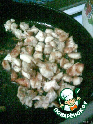 • Складываем в огнеупорную форму грибы и курицу, перемешиваем.