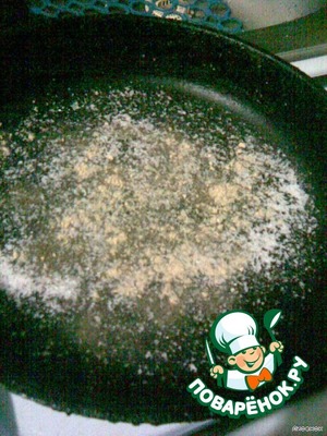 • Посыпаем сковородку специями (соль, перец, имбирь), наливаем масло