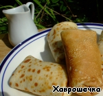 А уж как кушать, это насколько Вашей фантазии хватит. Тут блинчики смазаны растопленным шоколадом и измельченным орехами.