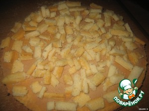 на второй корж выкладываем поломанный бисквит и покрываем оставшейся 1\\\\2 частью крема