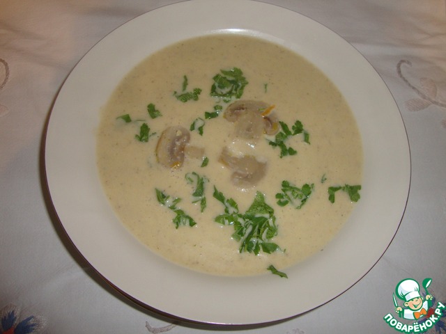 • Перед подачей к столу вылить суп в Блендер, измельчить суп до консистенции пюре (не более 1 минуты), добавить сливки.