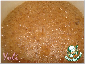 Довести смесь до кипения, всыпать соду и быстро перемешать деревянной ложкой (не пугайтесь, масса немедленно поднимется до самых краев кастрюли!) и снять с огня. Дать постоять 5 минут.