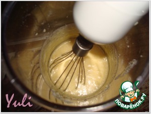 По одному добавляйте яйца, взбивая после каждого добавления.