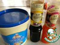 Готовим соус: 1 ст. л. майонеза + соевые соусы (по 1 ст. л).