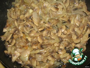 Лучок порезала полукольцами, добавила к грибам, еще пожарила, поперчила, посолила и потушила до готовности. -
