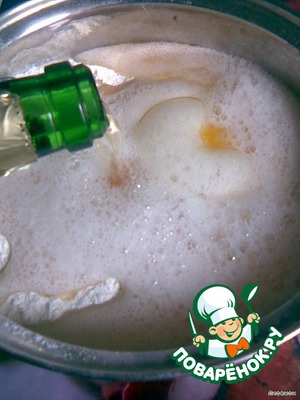 Происходит все как обычно: смешиваем муку, яйца и шампанское -