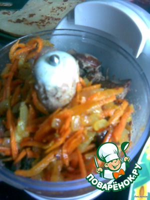 остывшую печень и овощи измельчаем в блендере или на мясорубке