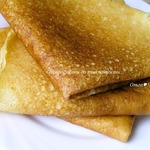 Хорошо разогреваем сковороду, смазываем ее маслом и наливаем тесто на сковороду, быстро повертывая ее, чтобы тесто разлилось по всей сковороде тонким ровным слоем.