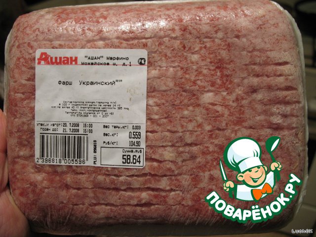 - Фарш мясной (лучше свино-говяжий) — 500-600 г