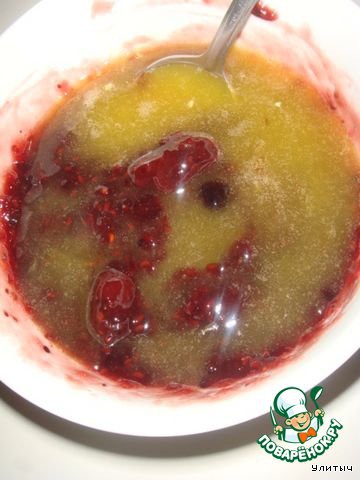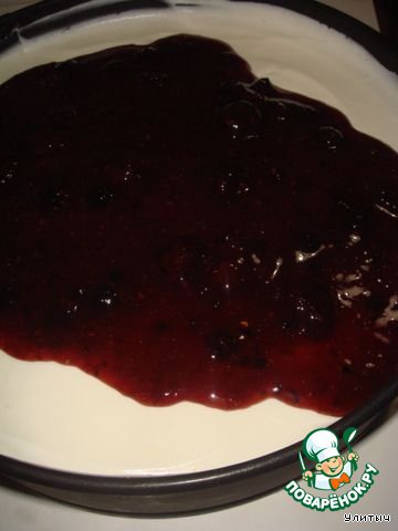 И наносим аккуратно, на уже загустевшую массу, наше варенье. Разравниваем.