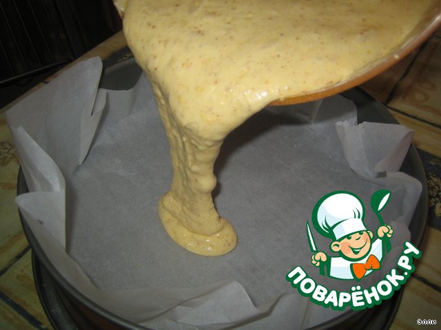 Дно разъемной формы 26 см выложить бумагой и вылить тесто.