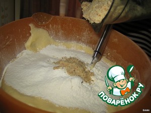 Затем добавить измельченный миндаль. Аккуратно все перемешать.