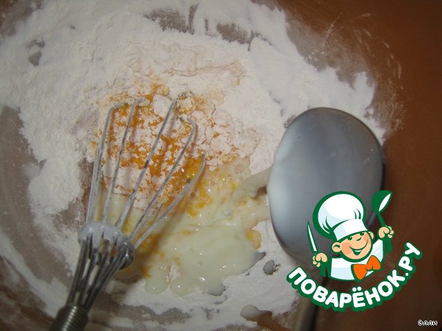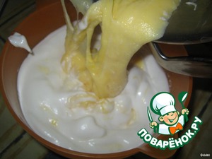 Взбитые белки аккуратно примешать к желтковой смеси лопаточкой.