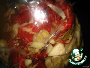 • Перемешиваем ингредиенты, добавляем приправы, все складываем в кулек (рукав для запекания)